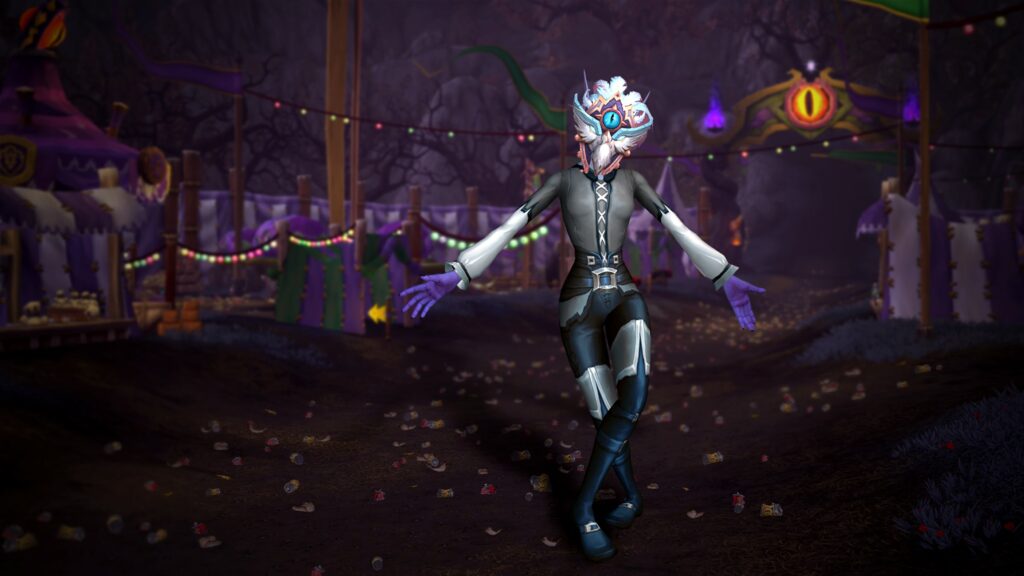 Le Masque de farce du charivari est une transmogrification exclusive disponible uniquement via les drops Twitch de World of Warcraft. Cette récompense cosmétique unique permet aux joueurs de personnaliser l’apparence de leur personnage avec un style festif et original, parfait pour les célébrations de fin d’année.