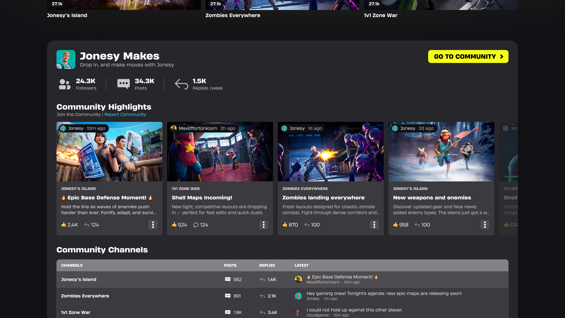 Les développeurs peuvent désormais accéder aux communautés Fortnite et commencer à bâtir leur présence en ligne ! Cette nouvelle fonctionnalité vous permet de créer des canaux dédiés et de publier du contenu varié : informations sur vos îles, annonces d’événements, ou encore sollicitation de retours d’expérience de la part de votre audience.